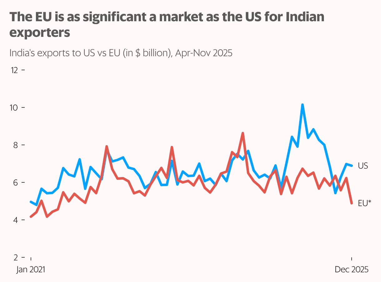 What about India? For India, the prize is access. Indian exporters, including textiles and other manufacturing sectors, will face zero or near-zero tariffs when selling into the EU. The deal also goes beyond tariffs, with commitments to smoother customs procedures, closer regulatory co-operation and support for Indian industry to decarbonise.