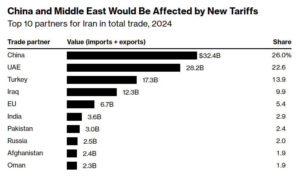 Trump just announced more tariffs (shock). This time he's targeting any country trading with Iran.