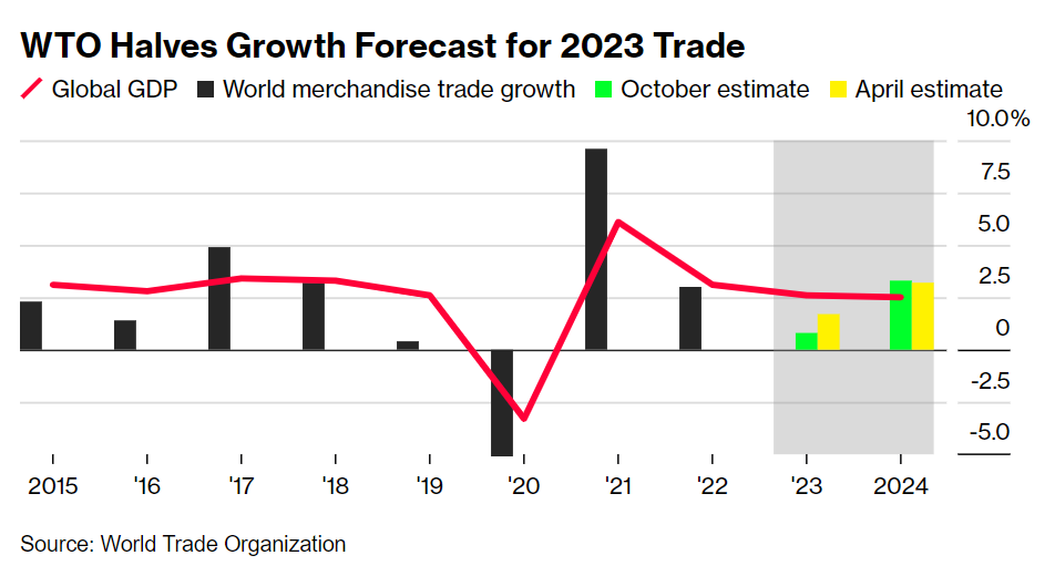 To make matters more complicated, the World Trade Organization (WTO) just slashed its growth forecast for 2023 trade.