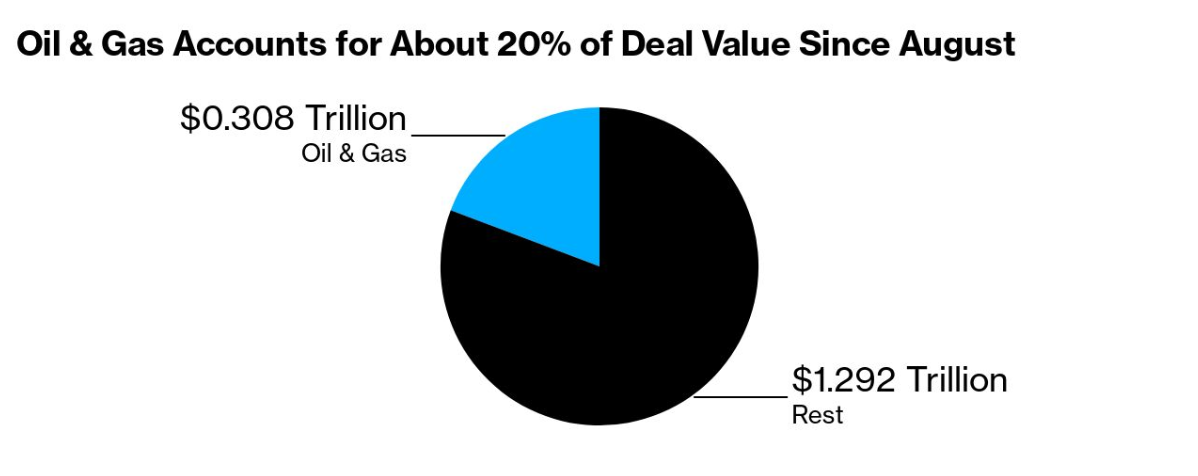 Despite the global M&A scene hitting a bit of a rough patch, the oil and gas industry is buzzing with activity. Over recent months, the industry has been posting some eye-popping numbers, with deals in the oil and gas sector making up a cool 20% of global deal value since last August. That's pretty impressive, right?